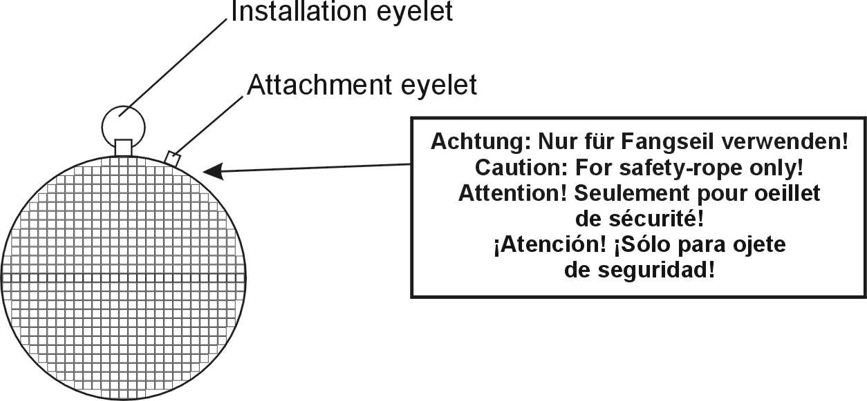 This model in professional quality has a diameter of 40 cm and is covered with countless small mirrors (10 x 10 mm). The robust plastic core is covered with hundreds of small mirror facets and features a continuous shaft guaranteeing a high tensile strength. The mirror ball also includes two eyelets allowing for attaching both the fastening chain and the required fall protection.
